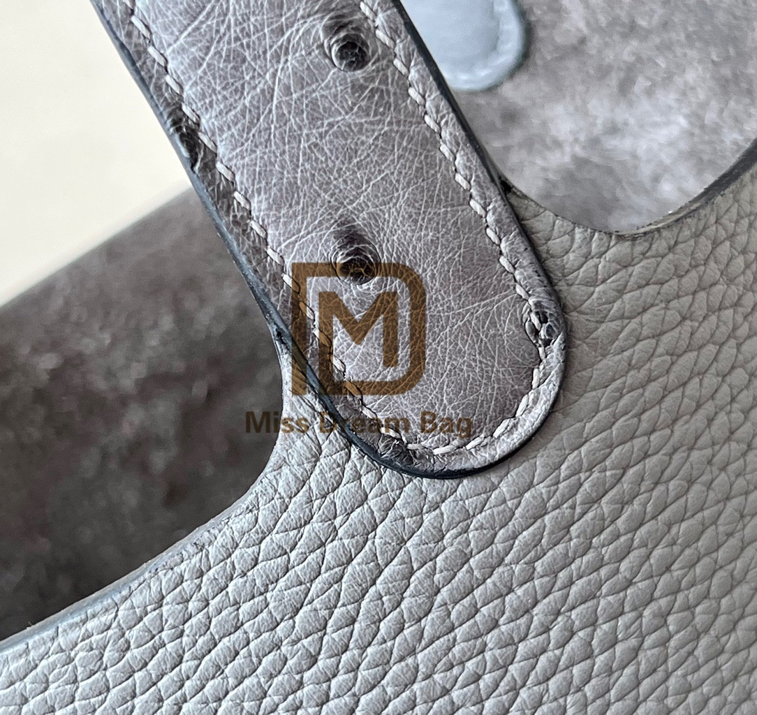 Hermes Picotin Ostrich skin with Togo #0L Gris Meyer18-22cm